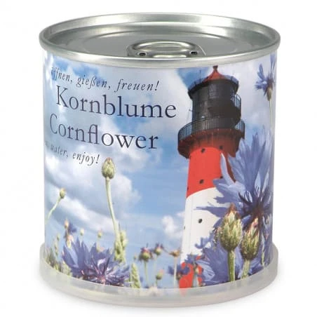 Cette canette contient des Bleuets prêt à faire pousser et le nécessaire de terreau !