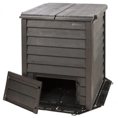 Son design allie esthétisme et facilité d’utilisation. Ainsi, son couvercle en deux parties facilite l’apport de déchets et ses deux trappes de retrait la récupération du compost.