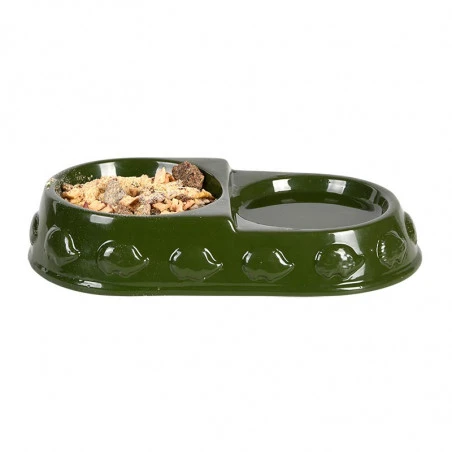 Les avantages de cette mangeoire : La partie eau est située plus basse que la partie nourriture pour éviter que de l’eau pénètre dans la partie nourriture. De plus, la partie nourriture est composée de de trou de drainage qui empêche l’eau de stagner en cas de pluie.