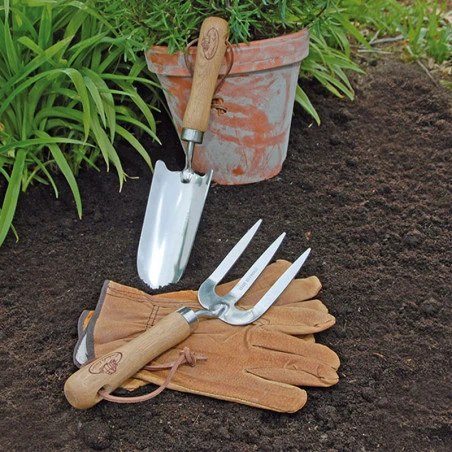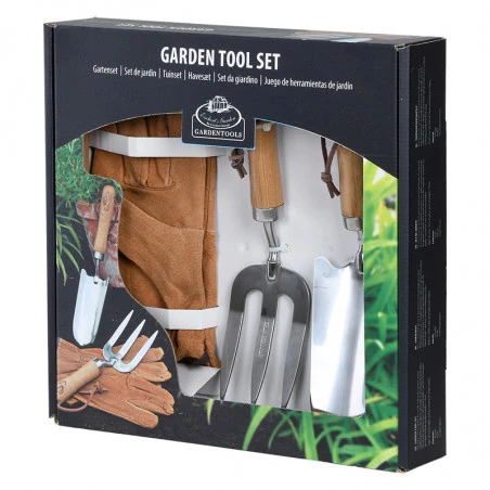 Ce lot contient de beaux outils et accessoires en bois de frêne et en métal inoxydable, composé de gants en cuir, une petite pelle et une petite fourche, il fait un cadeau très utile.