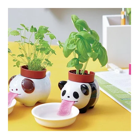 Kit tout prêt pour faire pousser du Basilic dans votre Peropon. Le mignon Peropon lape l’eau de la soucoupe et le Basilic pousse sur son dos comme par magie. Le secret ? Sa petite langue rose en feutre aspire l’eau jusqu’au terreau du pot. Fabriqué en céramique vernie, Peropon comprend tout ce dont vous avez besoin pour faire pousser votre plante. Dimensions : 7 cm X 7.6 cm X 10.5 cm
