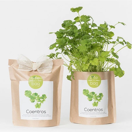 Ouvrez-le sac et remplissez avec le substrat fourni à l’intérieur ; Versez quelques graines de coriandre et vaporisez-les ; Couvrez le tout d’un plastique afin de maintenir l’humidité ; Placez le sac dans un endroit lumineux.