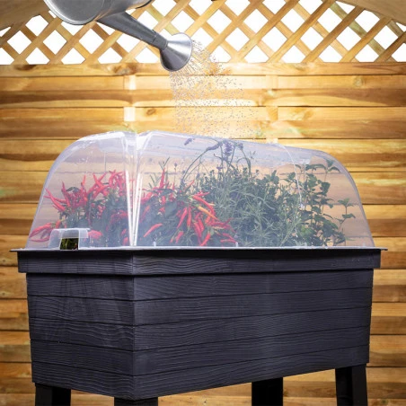 La serre de culture est l’accessoire idéal pour votre potager. Elle vous permettra de gagner de précieuses semaines de plantation ! Ce modèle de serre de culture s’adapte au carré potager sur pieds de la marque Garantia (vendu séparément)