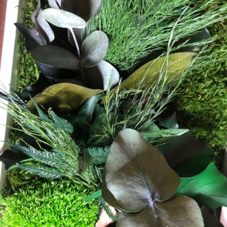 Le tableau végétal mural stabilisé de 115 cm est une véritable œuvre d’art végétale qui apporte une ambiance naturelle et vivante à votre espace intérieur. Composé de nombreuses plantes soigneusement sélectionnées, ce tableau végétal offre une variété de couleurs, de formes et de textures qui ajoutent une dimension visuelle captivante à votre décoration.